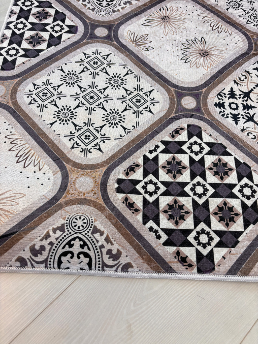 Bézs vintage csempe mintás konyhai szőnyeg 60x180 cm