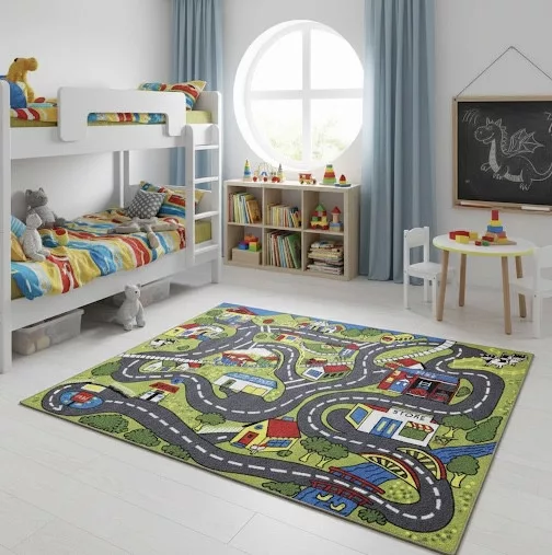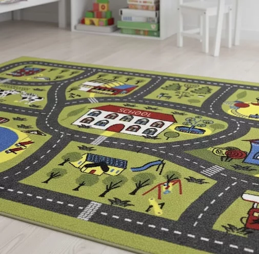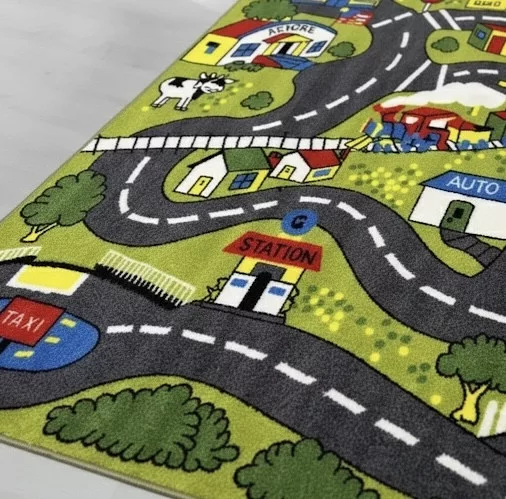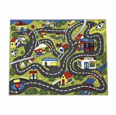 Gyerek szőnyeg, zöld, kisvárosi utak, 80x120cm