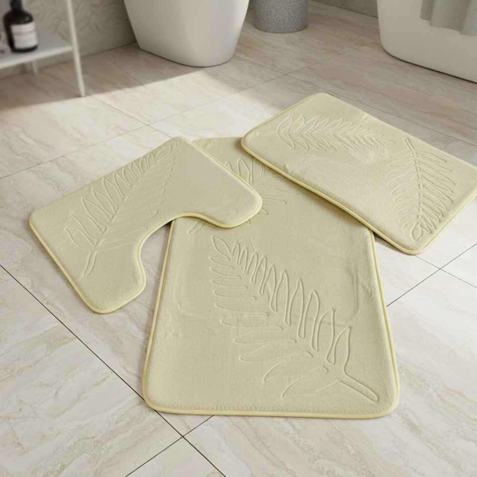 Háromrészes sárga, domborított mintás fürdőszobai szőnyeg