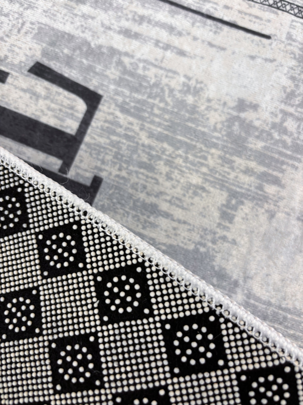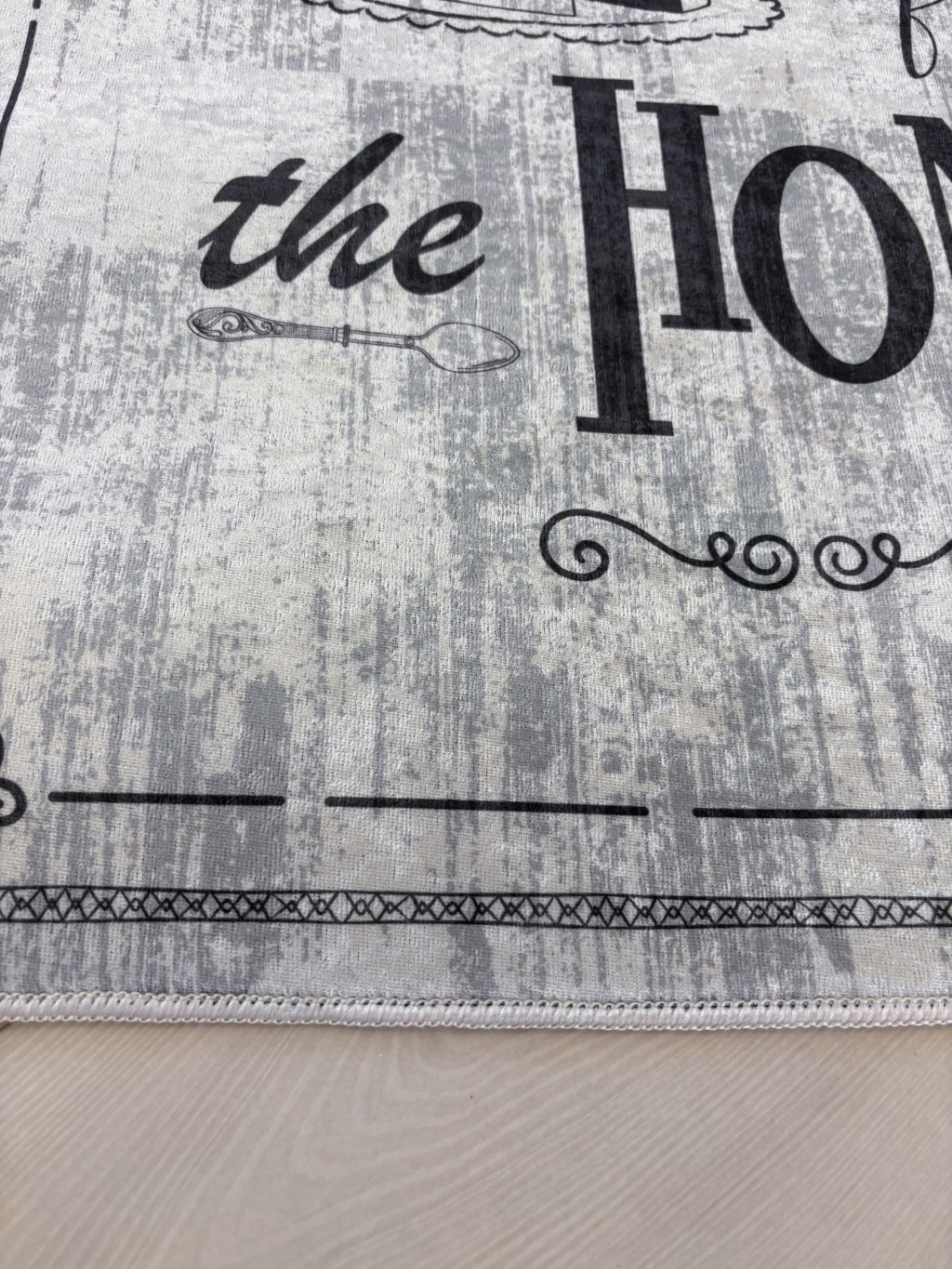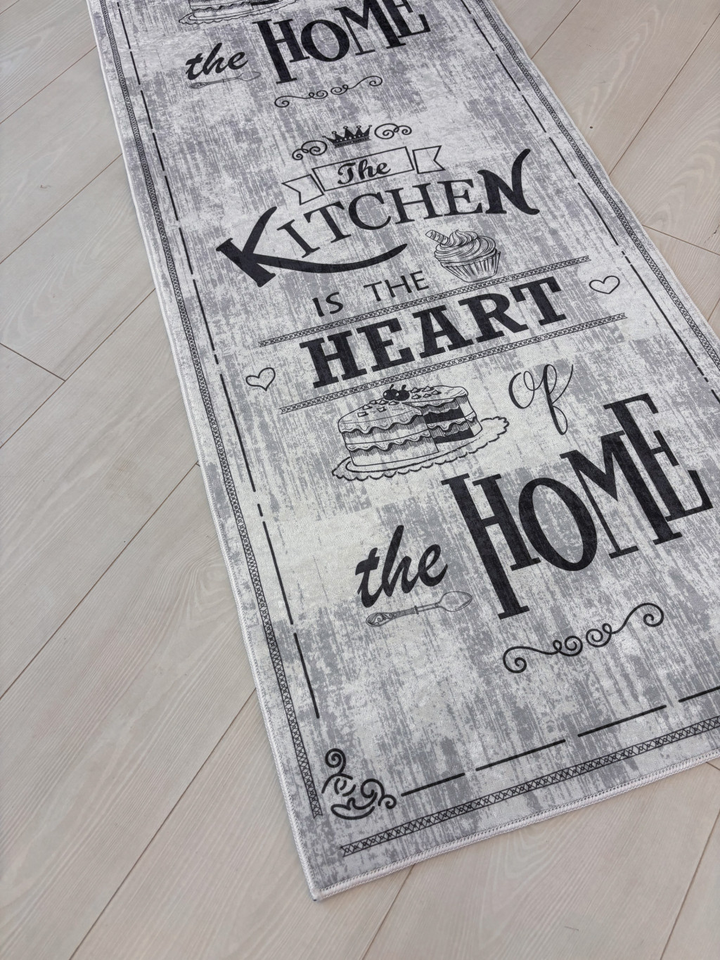 Szürke, felirat mintás konyhai szőnyeg 70x200 cm