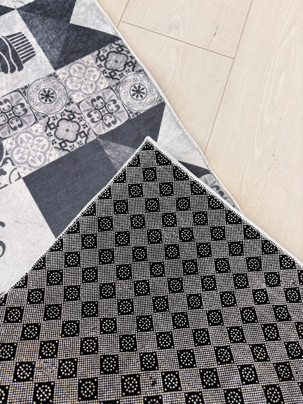 Szürke, vintage csempe mintás konyhai szőnyeg 70x200 cm