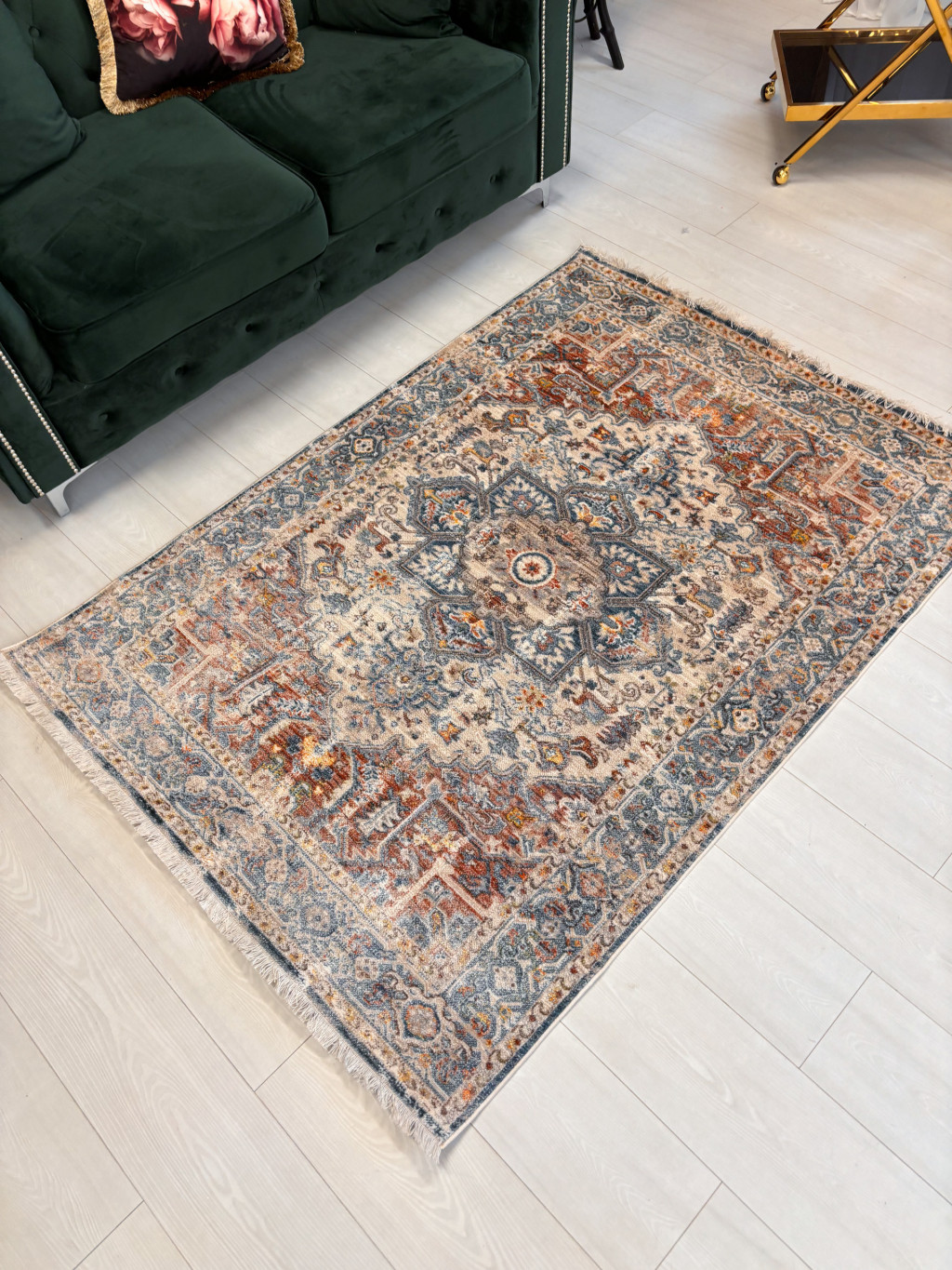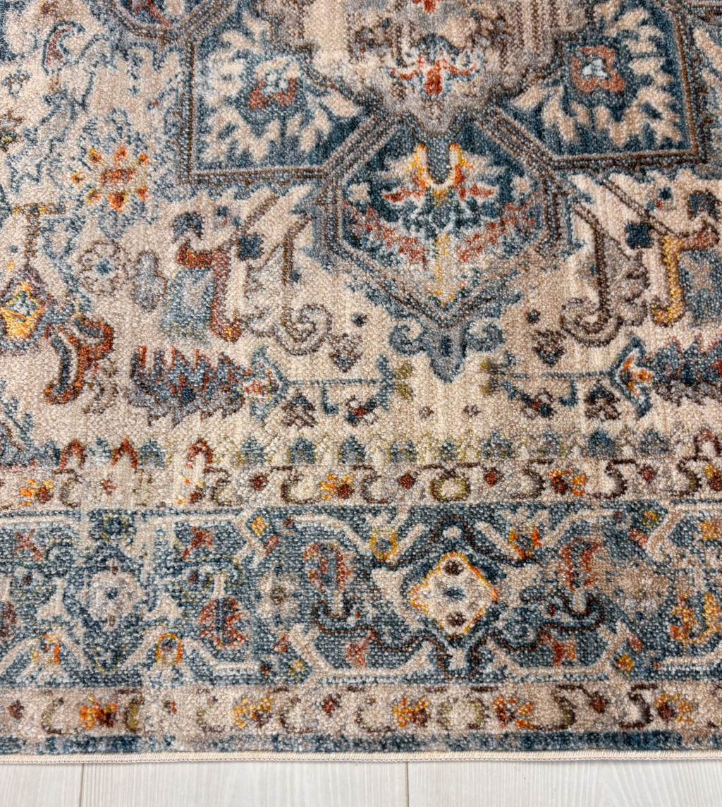 Venus 276 bézs, kék mintás klasszikus szőnyeg 70x150 cm